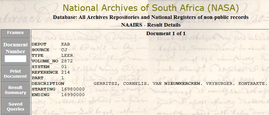 b2 Gerrit * 1695 = 18 Sep 1695, Cape Town x 16 Oct 1725, Anna Dorothea BRONS.
